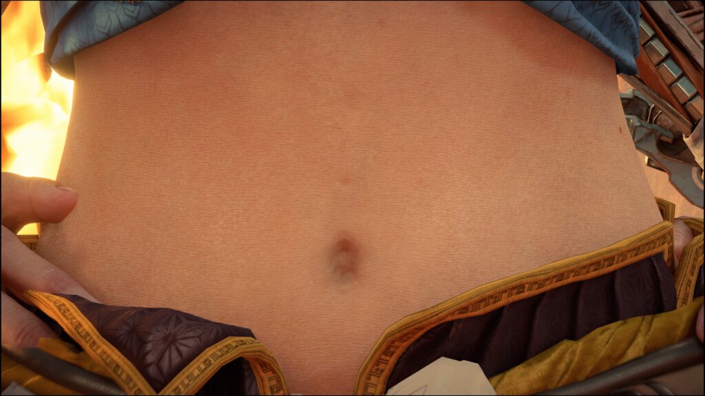 ゲームボリュームに関しては前作の倍近くあり、やりごたえはありましたがグラフィックが一新されたことで前作では良かったお腹の作りが全く別物になってしまったのが非常に残念。(上の画像は主人公アーロイのお腹)