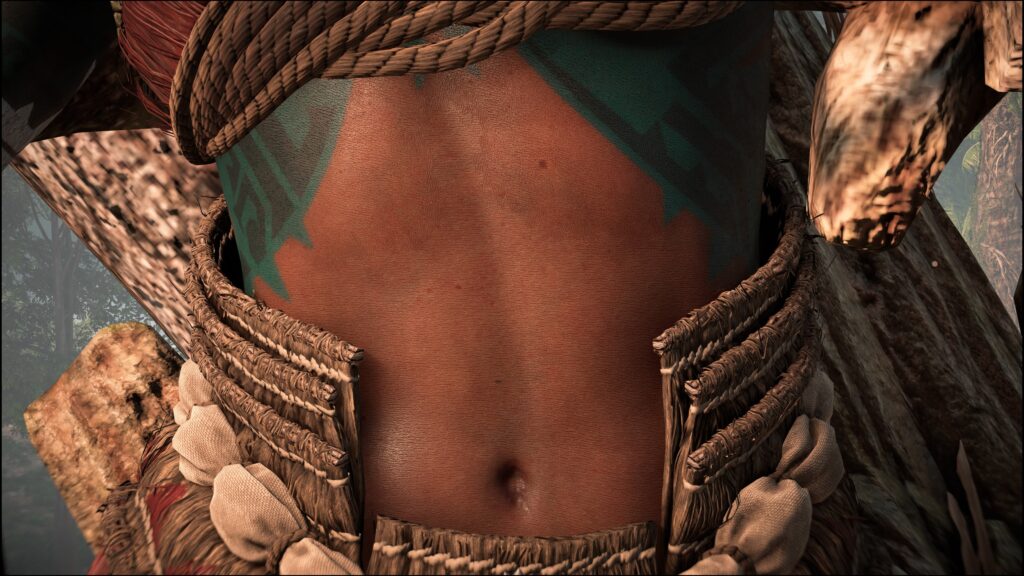 前作で登場した腹出しアーマーの腹筋割れ割れ女戦士の皆さんは登場せず、腹出し部族の方々が新たに登場します腰蓑のような装備をしており下腹部が見えないのがもどかしい