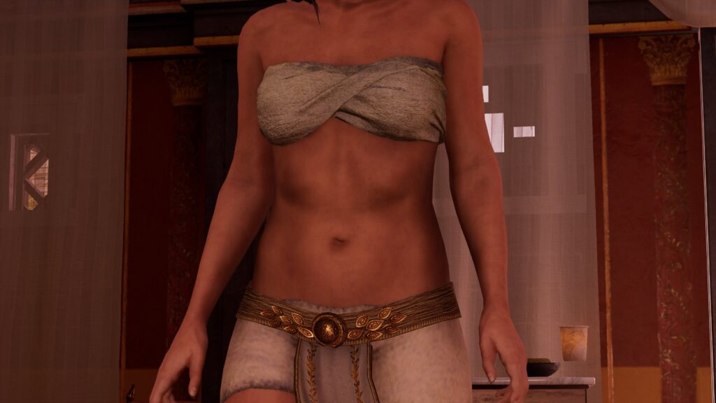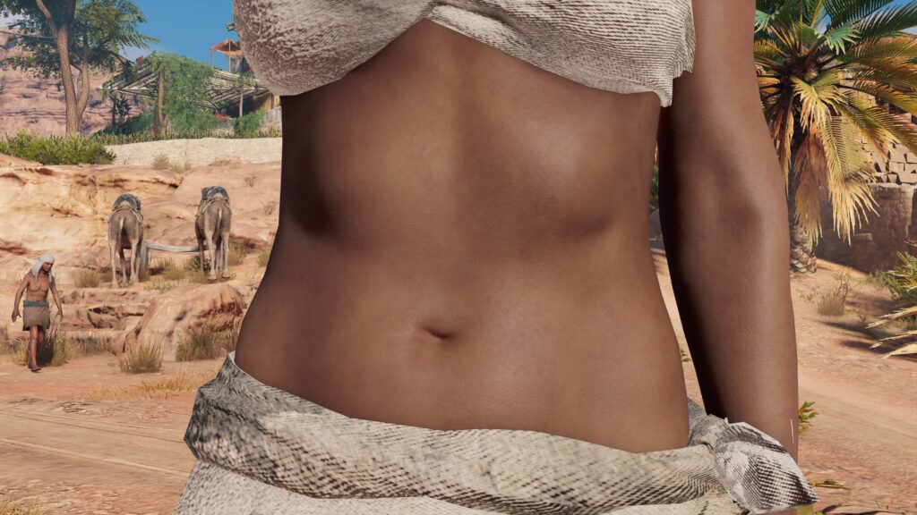 お腹を見ることの出来るのはNPCと主人公の妻アヤ(ムービーシーン限定)のみなので少し物足りなさがあります。アヤを操作することが出来る場面も一時あるものの、防具を外しても外見が変わることもないので腹部を見ることができません。