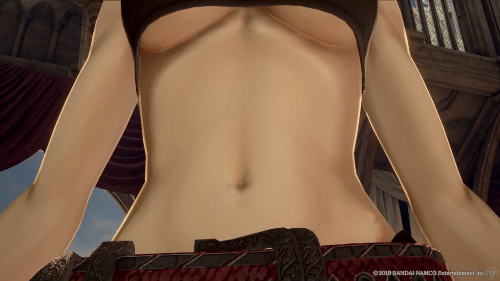 腹部を見ることができるのは主に女主人公とお腹を出した仲間キャラクターです。あと女型の敵モンスターで人外っぽいけどエロいのが出てきます。正直そいつのお腹がこのゲーム内のキャラクター中一番良かったです。腹部しか映ってないけどバケモンだったと思います(画像↓)