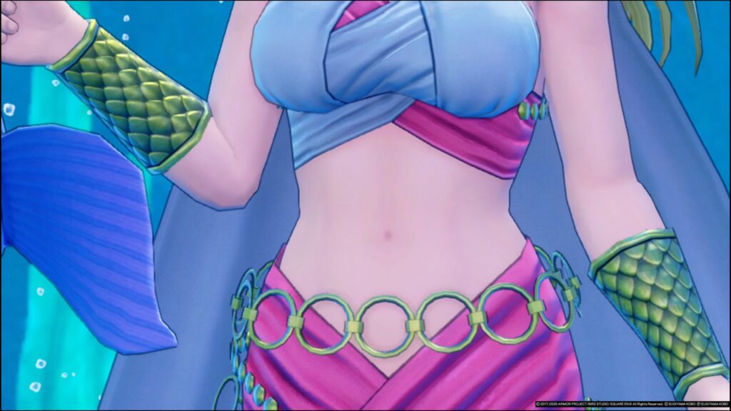 主にお腹を見ることが出来るのはPTメンバーのマルティナ、セーニャの一部衣装、海底王国の女王セレン